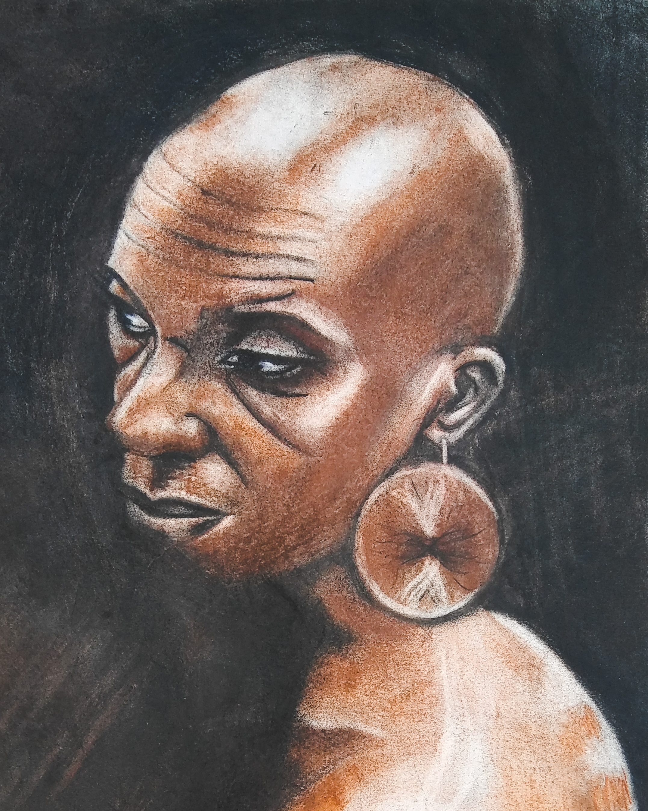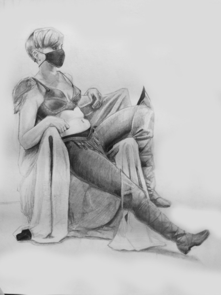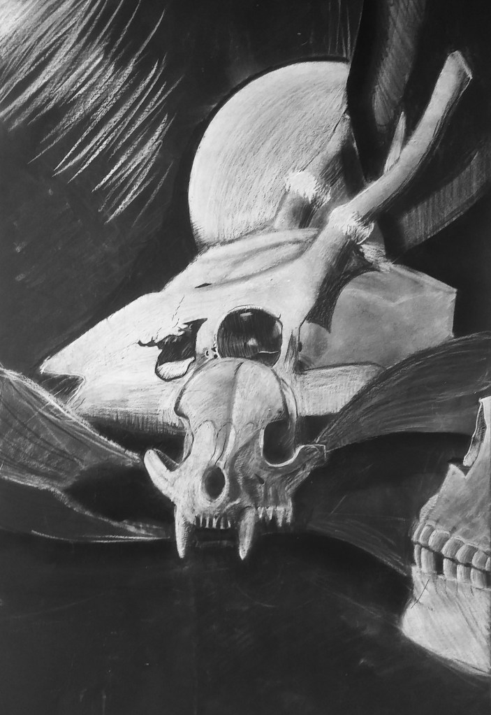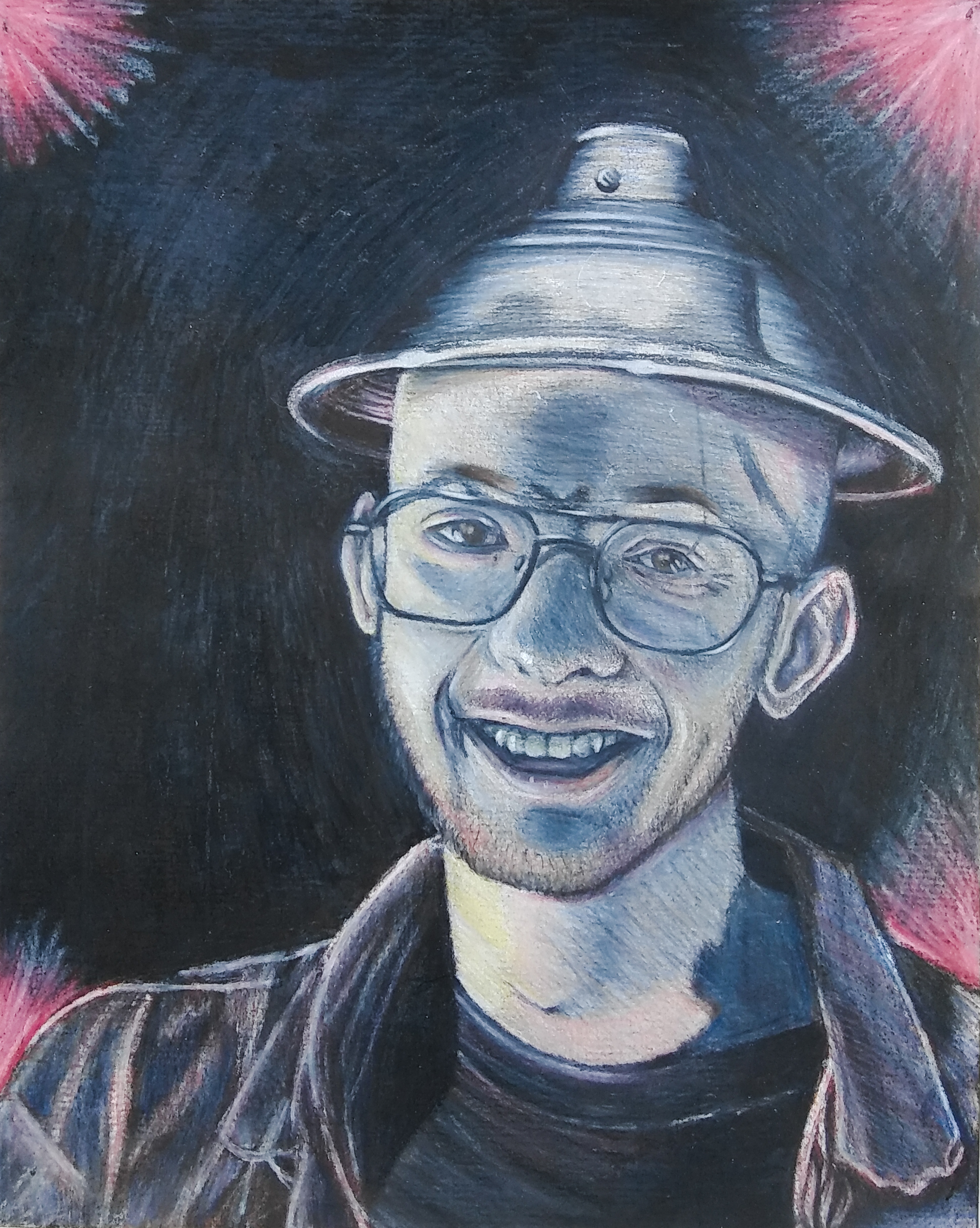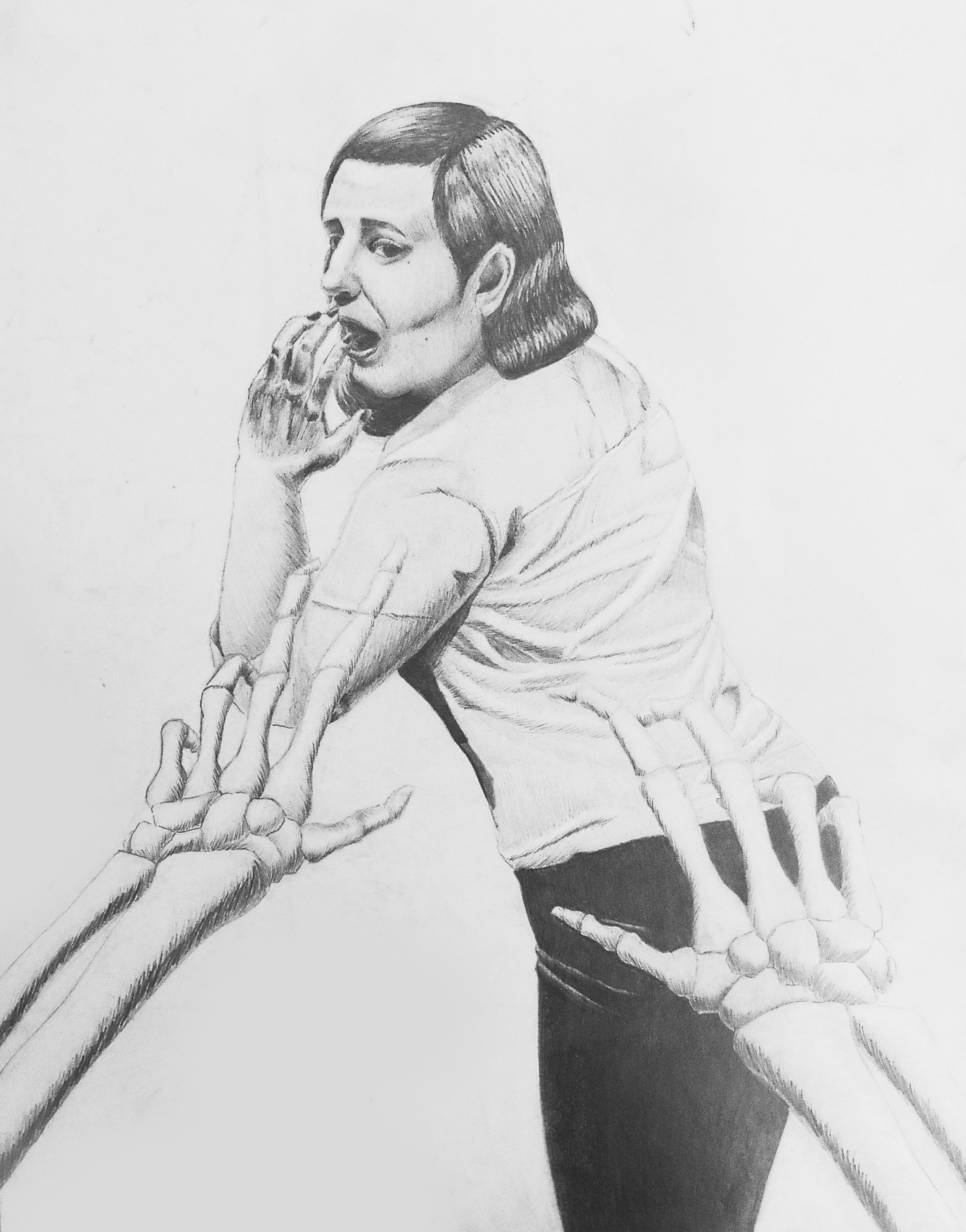 Self-Portrait Inside a Chrome Ball, 2021, Ink, 10 in. x 10 in.Teapot Study, 2021, Watercolor, 10 in. x 10 in.Self Portrait with Sheila, 2020, Graphite, 9 in. x 12 in.Figure Study, 2020, Pastels, 18 in. x 24 in.Scary Hands, 2020, Graphite, 18 in. x 24 in.Portrait of my Sister, 2020, Pastels, 12 in. x 18 in.Many Hats, 2019, Colored Pencil, 8 in. x 10 in.Bones, 2018, Pastel, 15 in. x 22 in.Linear Perspective, 2018, Graphite, 18 in. x 24 in.Texture, 2018, Charcoal, 18 in. x 24 in.