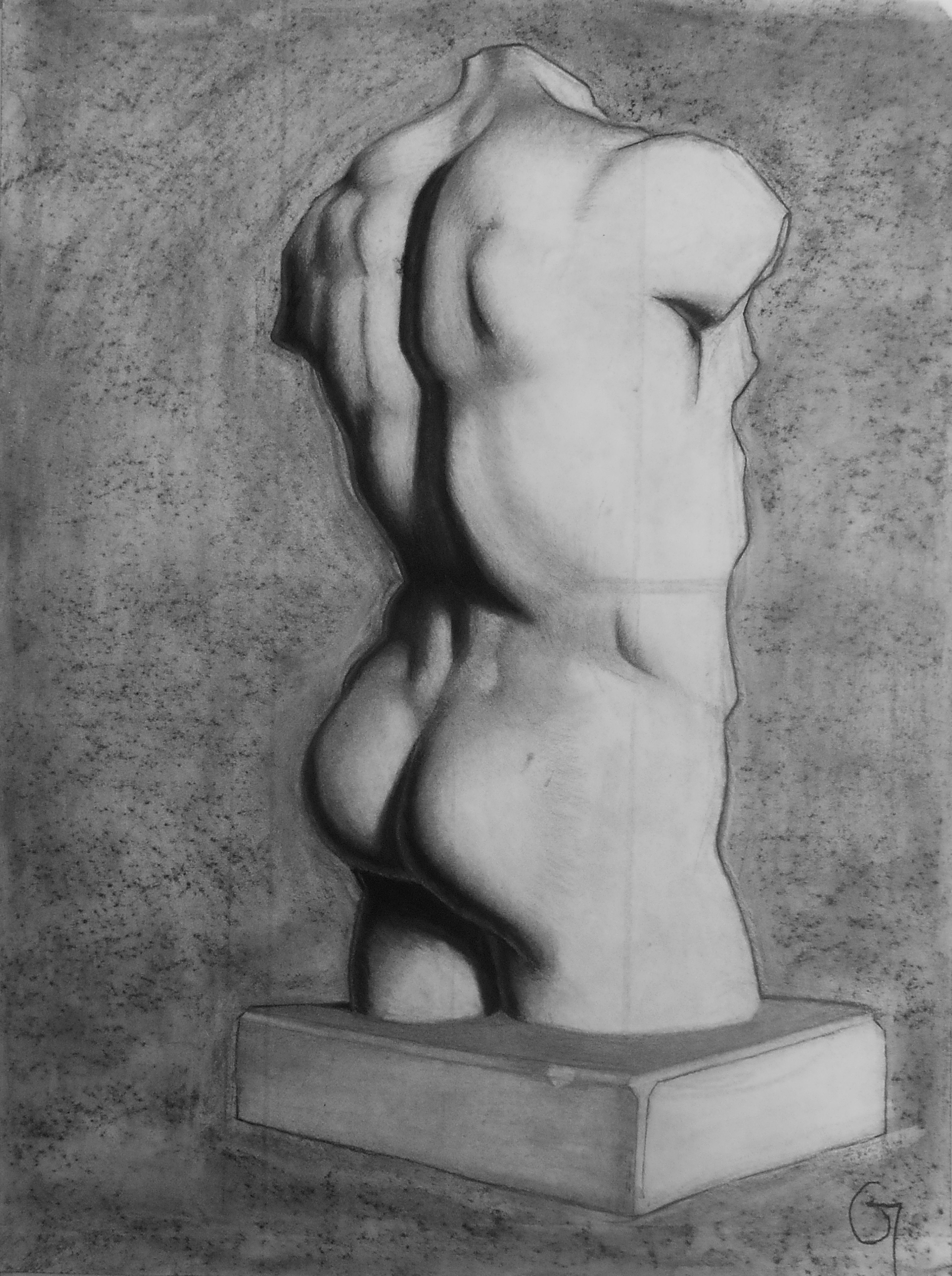 Robot, 2021, Watercolor and Motor Oil, 14 in. x 22 in.Pumpkin Study, 2021, Watercolor, 7 in. x 7 in.Study, 2021, Graphite, 18 in. x 24 in.Pet Portrait, 2021, Marker and Ink, 11 in. x 17 in.Nap Time, 2020, Graphite, 9 in. x 12 in.Master Study, 2020, Charcoal, 18 in. x 24 in.Portrait of my Sister, 2020, Pastels, 12 in. x 18 in.Self Portrait, 2019, Colored Pencil, 9 in. x 12 in.Figure Bust, 2019, Conte Crayon, 6 in. x 6 in.